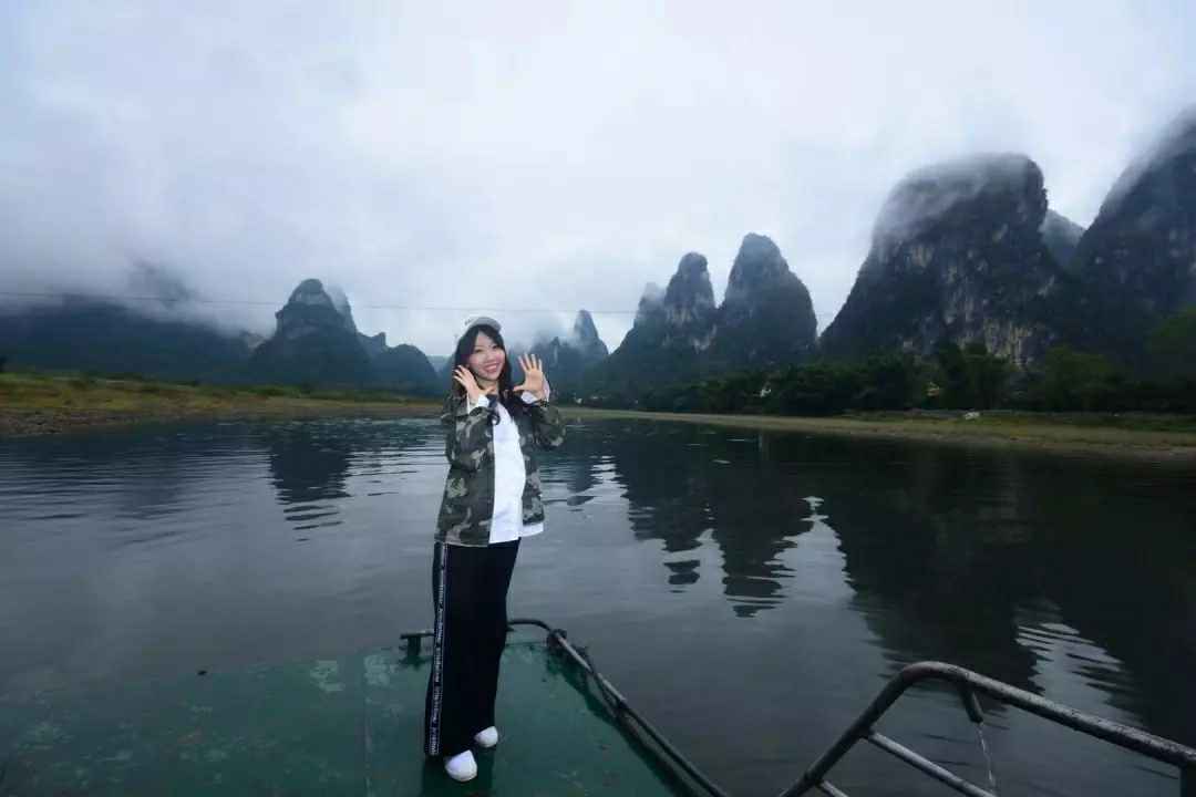 分明看倒影,船却颠上行。忘记了都市的嘈杂,人人沉浸在这宁静的山水之中,返璞归真,也真正地见识了诗中的訾洲烟雨和漓江悠悠。